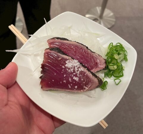高知のカツオは大きくて食べ応えがあり、粗塩で食べるのがとても美味しかったです。